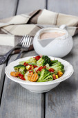 Miseczka sałatki świeże na drewnianym stole