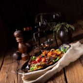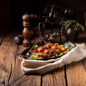 Kotlety jagnięce marynowane w ziołach z zielonymi szparagami i wapnem