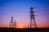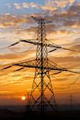 energii elektrycznej filarów przeciwko kolorowy zachód słońca