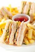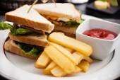 świeże trzy piętrowy club sandwich z frytkami na stronie