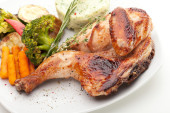 świeże piwo gulasz z kurczaka z sosem i wymieszać warzywa