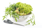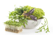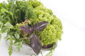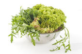 świeżych, surowych ziół i warzyw na cięcia pokładzie nad białym