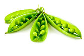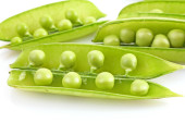 świeży zielony groszek na białym tle na czarnym tle