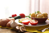 młode ziemniaki w patelni z warzyw na stole w kuchni
