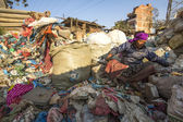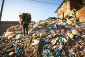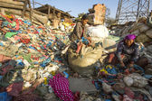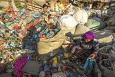 Niezidentyfikowanych ludzi sortowania z tworzyw sztucznych na wysypisku