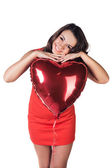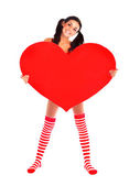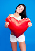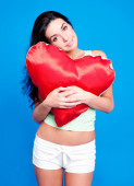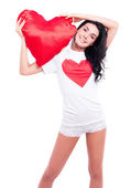sexy młoda kobieta siedzi na podłodze i ogarnięcie o wielkim sercu