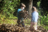 Dzieci idą do lasu po grzyby.