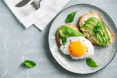 Zdjęcie "Kanapka z awokado z jajkiem na czarnym talerzu na drewnianym stole" może być wykorzystywane do celów osobistych i komercyjnych zgodnie z warunkami zakupionej licencji Royalty-free. Obraz jest dostępny do pobrania w jakości wysokiej rozdzielczości do 5760x3840.