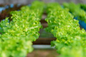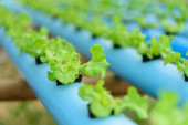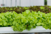 zbliżenie do świeżego greenoaku w rurze systemu hydroponicznego