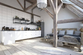 nowoczesny wystrój wnętrz. Ilustracja koncepcji 3d