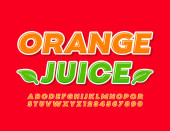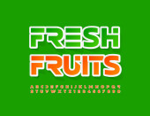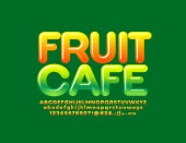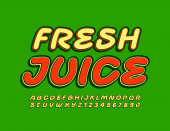 Logo wektorowe owocowy napój. Kolorowe czcionki. Modny zestaw liter i liczb alfabetu