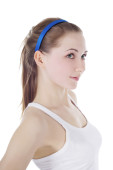 atrakcyjna młoda kobieta z fitness ekspander rozciągające