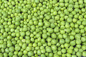 Świeży surowy zielony groszek z kroplami wody jako tło, zbliżenie