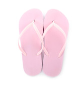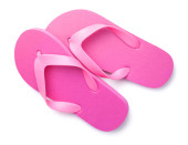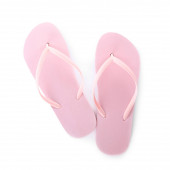 Stylowe różowe japonki na białym tle, widok z góry. Obiekt plażowy