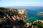 Widok na plażę Cala Flza, w pobliżu Punta Canneddi