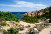 Zdjęcie "Widok na plażę Cala Flza, w pobliżu Punta Canneddi" może być wykorzystywane do celów osobistych i komercyjnych zgodnie z warunkami zakupionej licencji Royalty-free. Obraz jest dostępny do pobrania w jakości wysokiej rozdzielczości do 5760x3840.