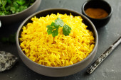Zdjęcie "Domowej roboty zdrowy ryż szafranowy w misce" może być wykorzystywane do celów osobistych i komercyjnych zgodnie z warunkami zakupionej licencji Royalty-free. Obraz jest dostępny do pobrania w jakości wysokiej rozdzielczości do 5760x3840.