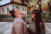 Zdjęcie "Dwie lesbijki tańczące na ulicy" może być wykorzystywane do celów osobistych i komercyjnych zgodnie z warunkami zakupionej licencji Royalty-free. Obraz jest dostępny do pobrania w jakości wysokiej rozdzielczości do 5760x3840.