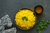 Domowej roboty zdrowy ryż szafranowy w misce