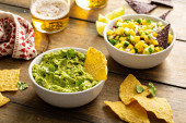 Zdjęcie "Chipsy tortilla z dipami, guacamolem i salsą" może być wykorzystywane do celów osobistych i komercyjnych zgodnie z warunkami zakupionej licencji Royalty-free. Obraz jest dostępny do pobrania w jakości wysokiej rozdzielczości do 5760x3840.
