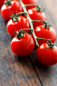 Świeże pomidory wiśniowe na starym drewnianym stole