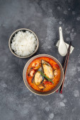 Zdjęcie "Tom Yam z łososiem, krewetki i grzyby drzewa" może być wykorzystywane do celów osobistych i komercyjnych zgodnie z warunkami zakupionej licencji Royalty-free. Obraz jest dostępny do pobrania w jakości wysokiej rozdzielczości do 5760x3840.