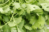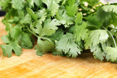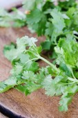 świeżej kolendry lub kolendry na desce na białym tle