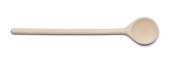 Prosta jednorazowa drewniana łyżka ustawiona na białym tle. Widok bezpośrednio z góry.