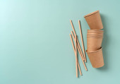 Zmiażdżony jednorazowy kubek na beżowym tle. Koncepcja zerowej ilości odpadów.