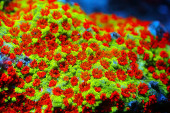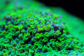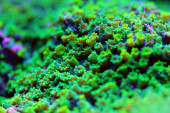 Otwarte polipy na koralowcu Montipora SPS, ultra makro