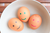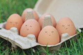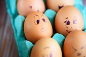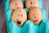 śmieszne jajka z pomalowaną twarzą w pudełku