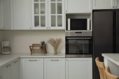 Zdjęcie "Nowoczesne wnętrze kuchni ze stylowymi białymi meblami" może być wykorzystywane do celów osobistych i komercyjnych zgodnie z warunkami zakupionej licencji Royalty-free. Obraz jest dostępny do pobrania w jakości wysokiej rozdzielczości do 5760x3840.