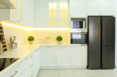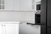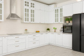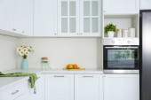 Nowoczesne wnętrze kuchni ze stylowymi białymi meblami