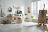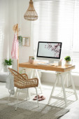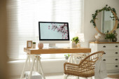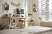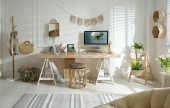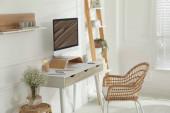 Stylowe wnętrze biura domowego z wygodnym miejscem pracy