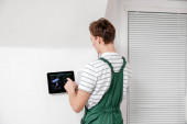 Zdjęcie "Kobieta korzystająca z panelu sterowania inteligentnego domu" może być wykorzystywane do celów osobistych i komercyjnych zgodnie z warunkami zakupionej licencji Royalty-free. Obraz jest dostępny do pobrania w jakości wysokiej rozdzielczości do 5760x3840.