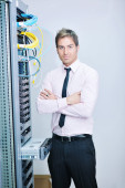 biznes człowiek praktykę jogi w sieci serwerownia