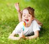 szczęśliwy 4-letniego chłopca z balonów odkryty w letni dzień