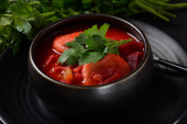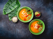 Tom Yam kung Spicy Thai zupa z krewetkami, mleko kokosowe i papryka chili w misce.