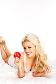 Zdjęcie "blondynka z jabłkiem" może być wykorzystywane do celów osobistych i komercyjnych zgodnie z warunkami zakupionej licencji Royalty-free. Obraz jest dostępny do pobrania w jakości wysokiej rozdzielczości do 5760x3840.