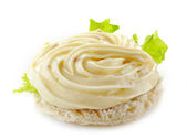świeża domowa śmietana wypełniona kremem kremowym pokrytym rozpuszczoną czekoladą izolowaną na białym tle