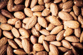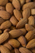 Bliski szczegół stosu surowych orzechów migdałowych ze skórką