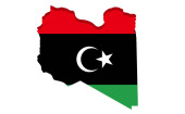 Libia mapa na Libię flaga, rysunek, grafika i serii retro flaga