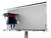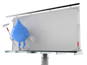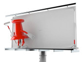 Łowienie postać platforma z pustym billboardem izolowane na białym tle. Ilustracja 3D