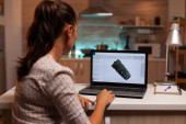 Zdjęcie "Kobieta patrzy na laptopa z zieloną makietą" może być wykorzystywane do celów osobistych i komercyjnych zgodnie z warunkami zakupionej licencji Royalty-free. Obraz jest dostępny do pobrania w jakości wysokiej rozdzielczości do 5760x3840.