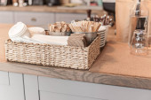 Pudełko z drewnem opałowym i wazonem na półce przy ścianie