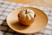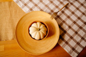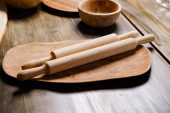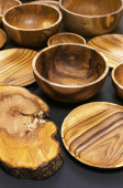 zestaw dań drewnianych i ekologicznych do gotowania i przechowywania żywności.