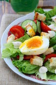 Sałatka z rukoli pomidorów i sera i oliwy z oliwek na talerzu