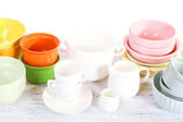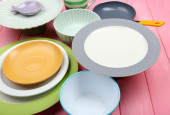 różne naczynia na drewniane tła