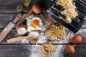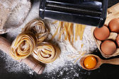 Martwa natura z surowego makaronu i składniki do makaronu