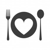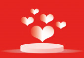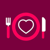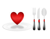 Czerwone serce na białych talerzach z białym sztućcami na pastelowym różowym tle, Dzień matki, Walentynki, Urodziny, Walentynki, plakat, styl cięcia papieru.